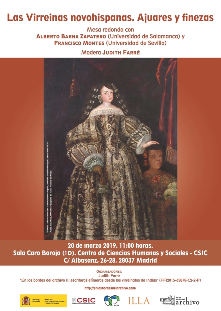 El próximo miércoles 20 de marzo llevaremos a cabo una mesa redonda sobre el papel femenino de las Virreinas en Nueva España, con la participación de Francisco Montes González y Alberto Baena Zapatero.