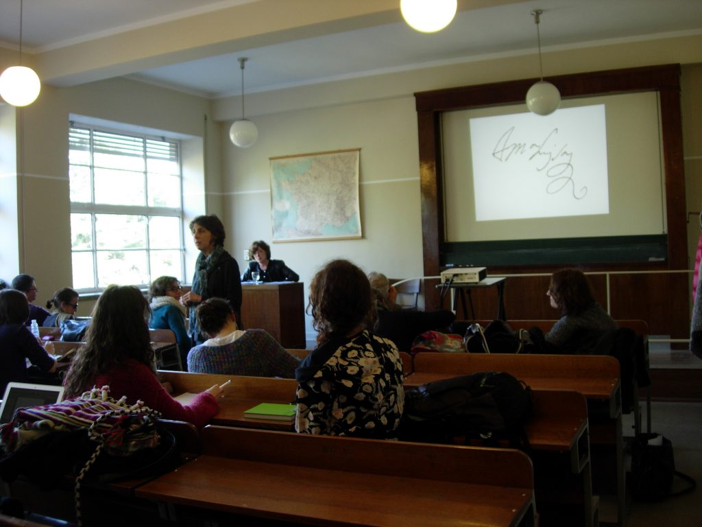 El género epistolar, que podríamos relacionar con el género del diario, del que nos habló la profesora Gloria Chicote, constituye un medio excepcional para conocer las subjetividades de quien escribe, su vida privada y su intimidad. Son textos escritos para ser leídos por un solo receptor y contienen infinidad de detalles, guiños, sobreentendidos que se nos escapan pero que al mismo tiempo nos ofrecen una faceta de otro modo oculta a lectores ajenos a la relación entre emisor y receptor. En el caso de la condesa de Paredes, la profesora Colombi habló de dos cartas, una dirigida a su prima, María de Guadalupe, duquesa de Aveiro, en 1682, y otra dirigida a su padre en 1687.
