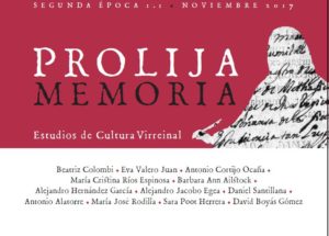 Revista «Prolija Memoria. Estudios de cultura virreinal». Segunda época, noviembre 2017